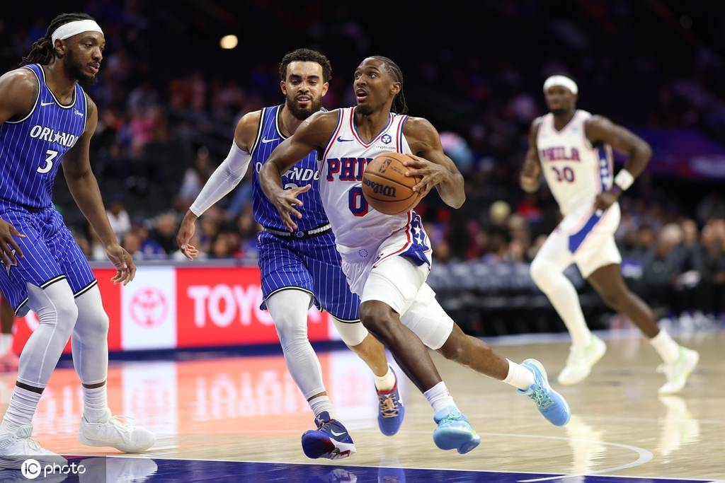 76人队首发:泰瑞斯-马克西、多米尼克-巴洛、凯利-乌布雷、阿德姆-博纳、贾斯汀-爱德华兹
