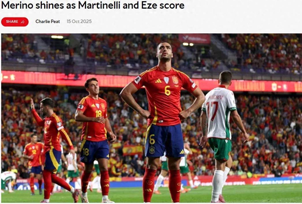 在西班牙的世预赛中,他们4-0大胜保加利亚。梅里诺在比赛中首发并打满全场,头球攻入两球,表现十分出色。梅里诺在四场世预赛中已经打进6球,状态火热!祖比门迪同样首发出战,踢了62分钟。拉亚作为替补并未上场。